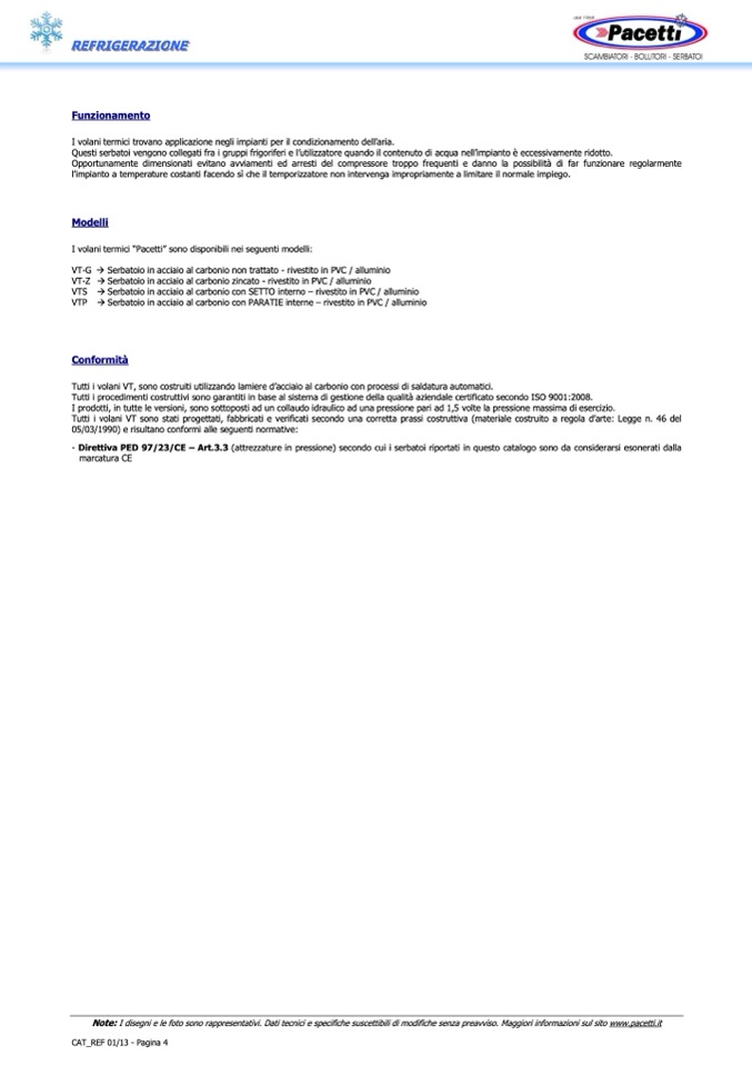 - Direttiva PED 97/23/CE – Art.3.3 (attrezzature in pressione) secondo cui i serbatoi riportati in questo catalogo sono da considerarsi esonerati dalla