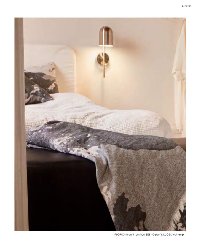 FLOREO throw & -cushion, SESSIO pouf & LUCEO wall lamp