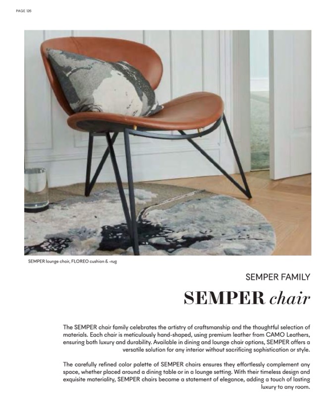ensuring both luxury and durability. Available in dining and lounge chair options, SEMPER offers a