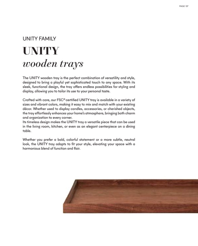 Its timeless design makes the UNITY tray a versatile piece that can be use