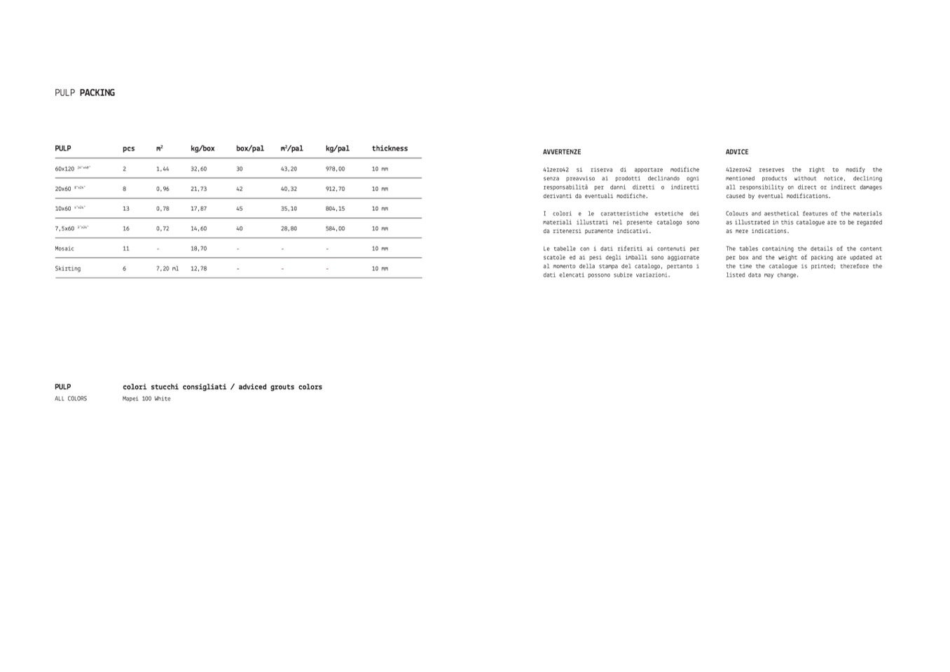 colori stucchi consigliati / adviced grouts colors