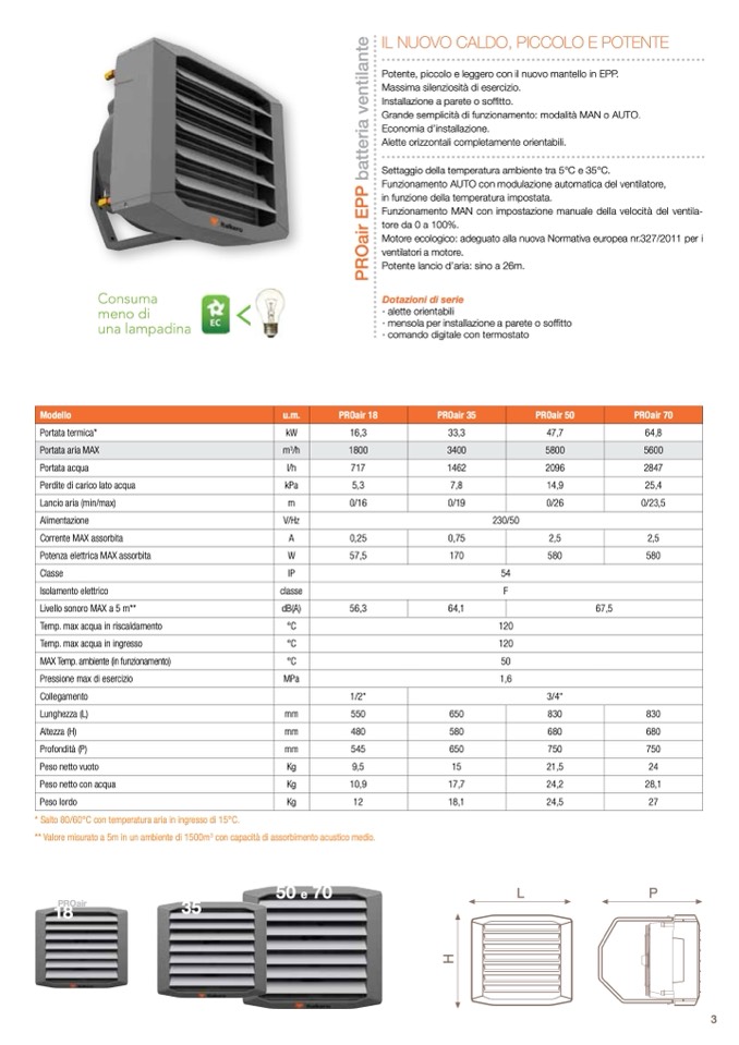 * Salto 80/60°C con temperatura aria in ingresso di 15°C.