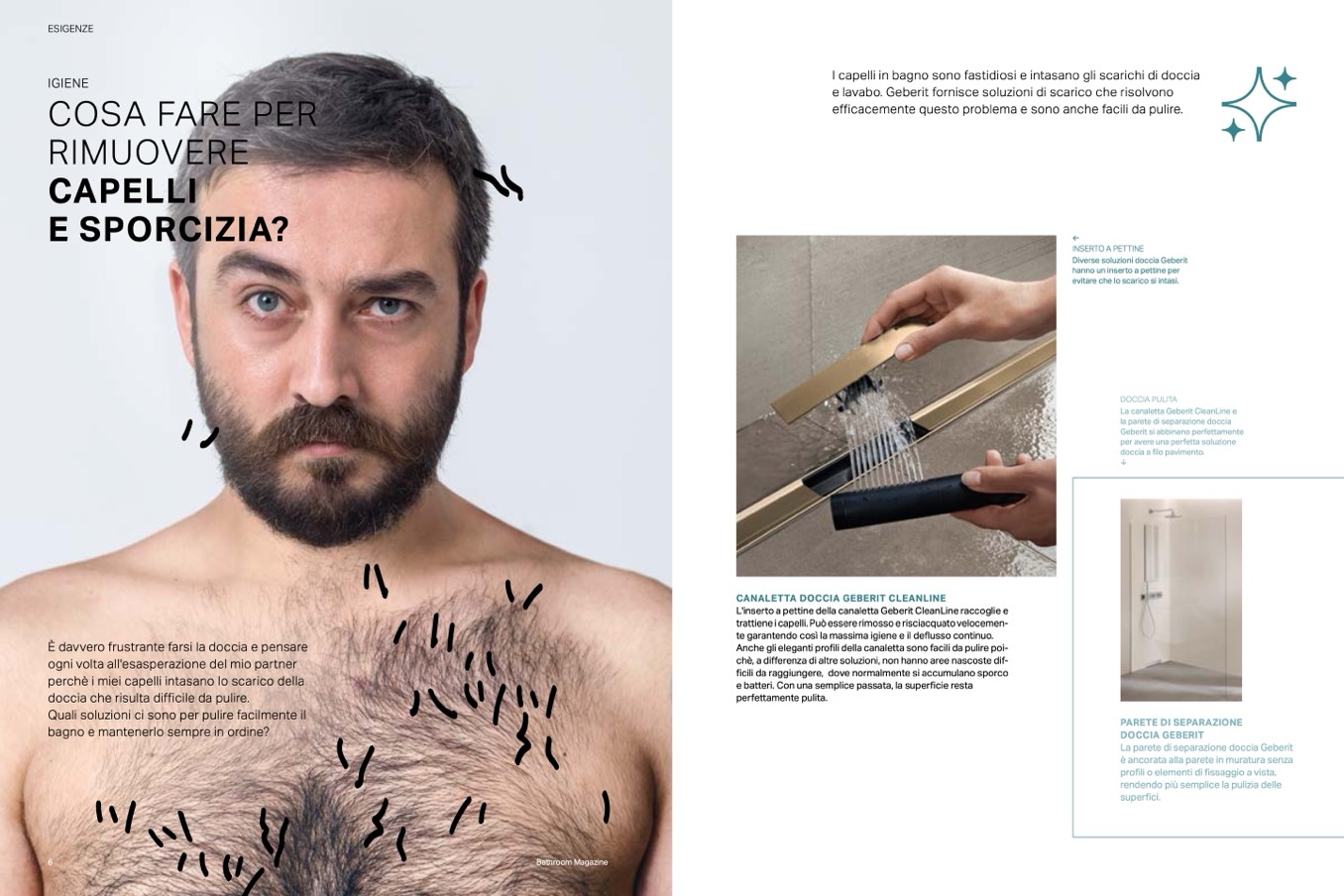 L'inserto a pettine della canaletta Geberit CleanLine raccoglie e