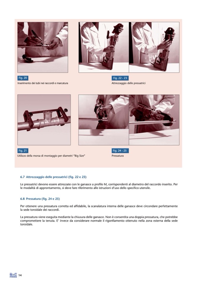 Le pressatrici devono essere attrezzate con le ganasce a profilo M, corrispondenti al diametro del raccordo inserito. Per