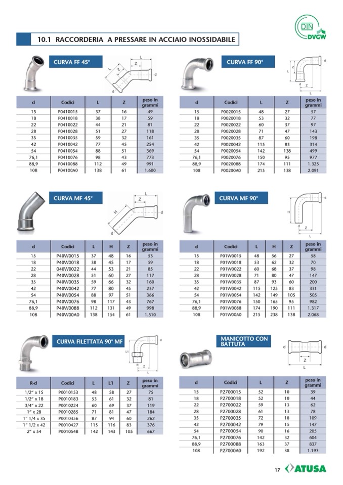 10.1 RACCORDERIA A PRESSARE IN ACCIAIO INOSSIDABILE