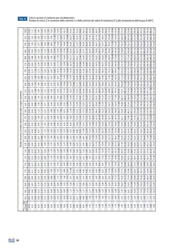 à v e della somma dei valori di resistenza Σ ξ alla temperatura dell’acqua di 80°C.