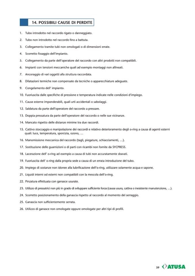 13. Doppia pressatura da parte dell’operatore del raccordo o nelle sue vicinanze.