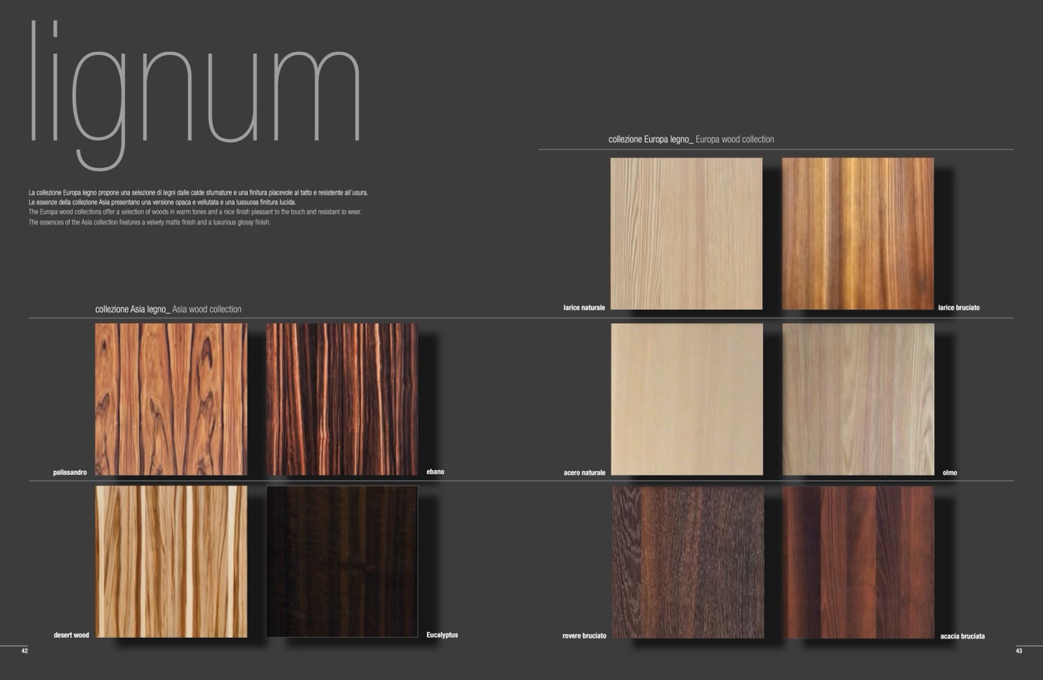 Le essenze della collezione Asia presentano una versione opaca e vellutata e una lussuosa finitura lucida.