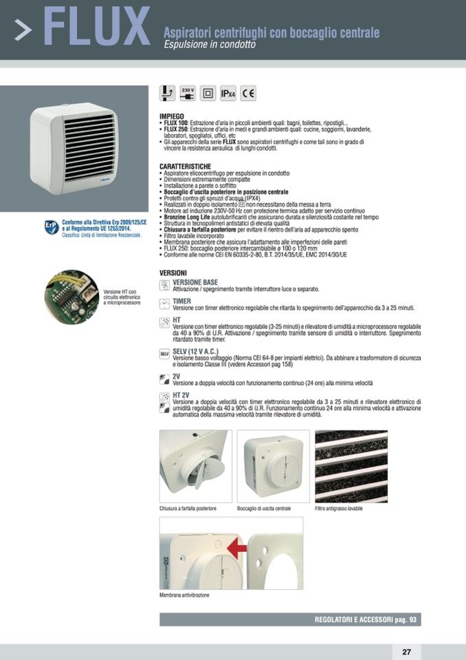 • FLUX 100: Estrazione d’aria in piccoli ambienti quali: bagni, toilettes, ripostigli...