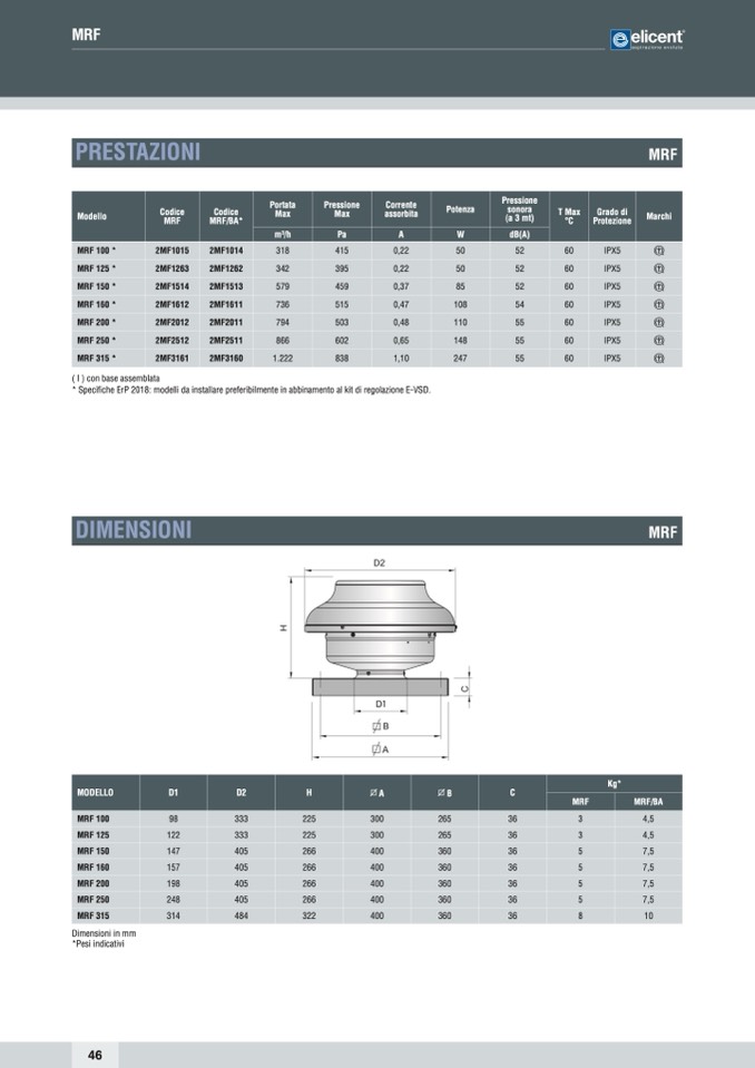 * Specifiche ErP 2018: modelli da installare preferibilmente in abbinamento al kit di regolazione E-VSD.