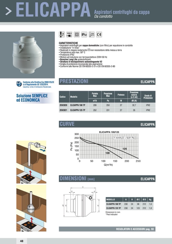 • Aspiratori centrifughi per cappe domestiche (con filtro) per espulsione in condotto