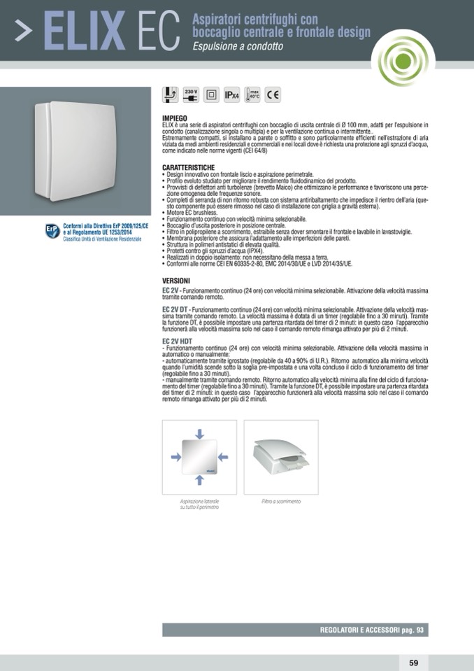 ELIX è una serie di aspiratori centrifughi con boccaglio di uscita centrale di Ø 100 mm, adatti per l’espulsione in