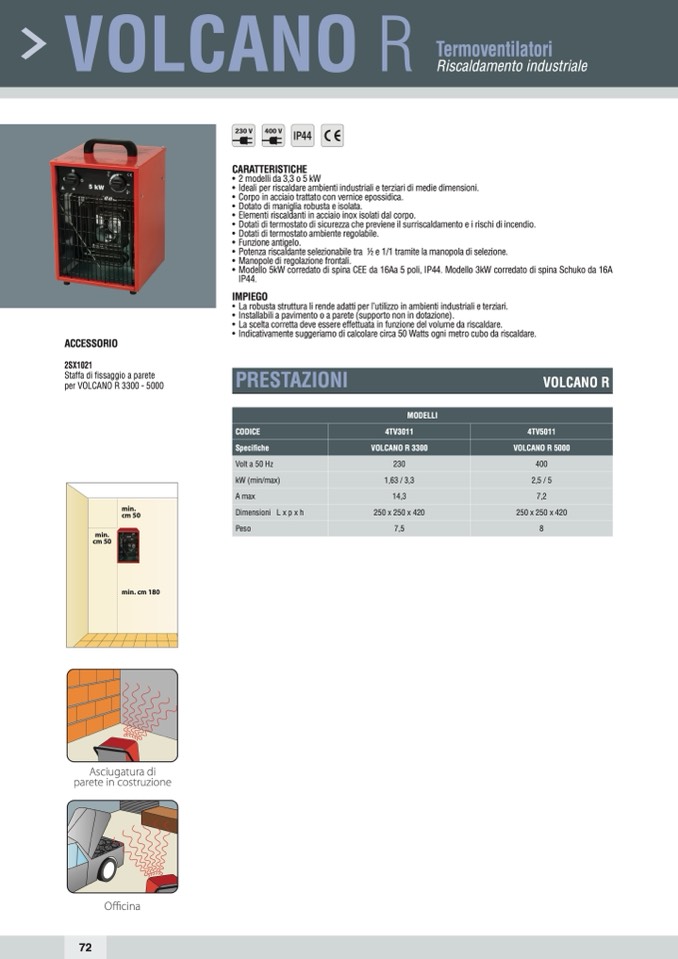 • Modello 5kW corredato di spina CEE da 16Aa 5 poli, IP44. Modello 3kW corredato di spina Schuko da 16A