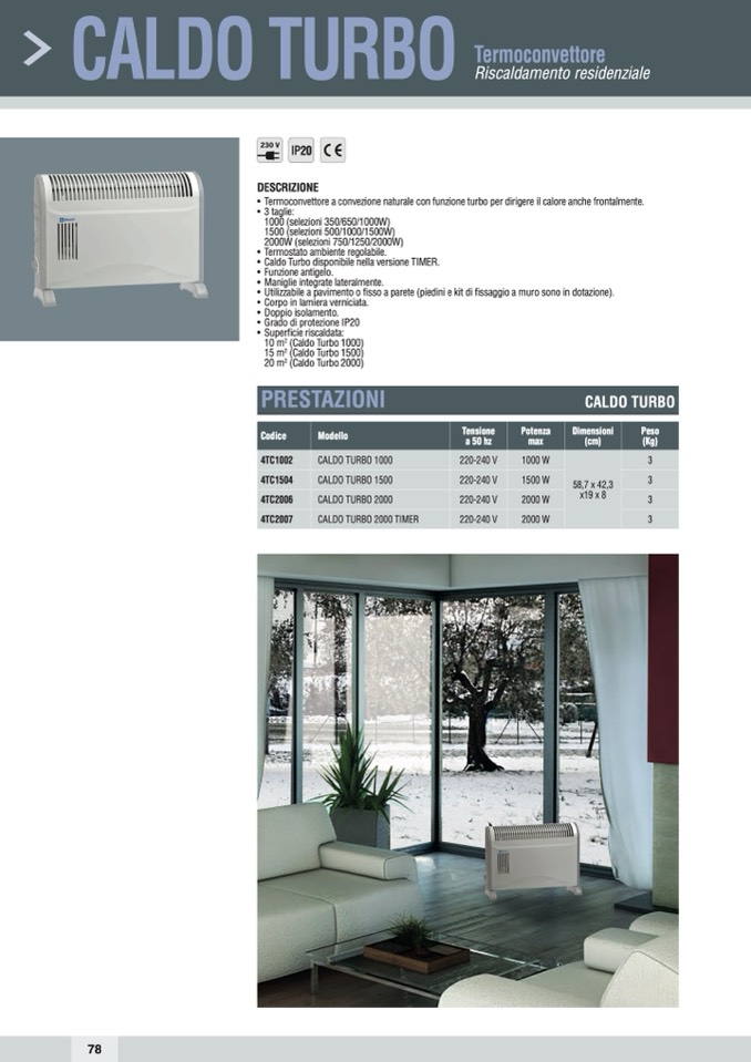 • Termoconvettore a convezione naturale con funzione turbo per dirigere il calore anche frontalmente.