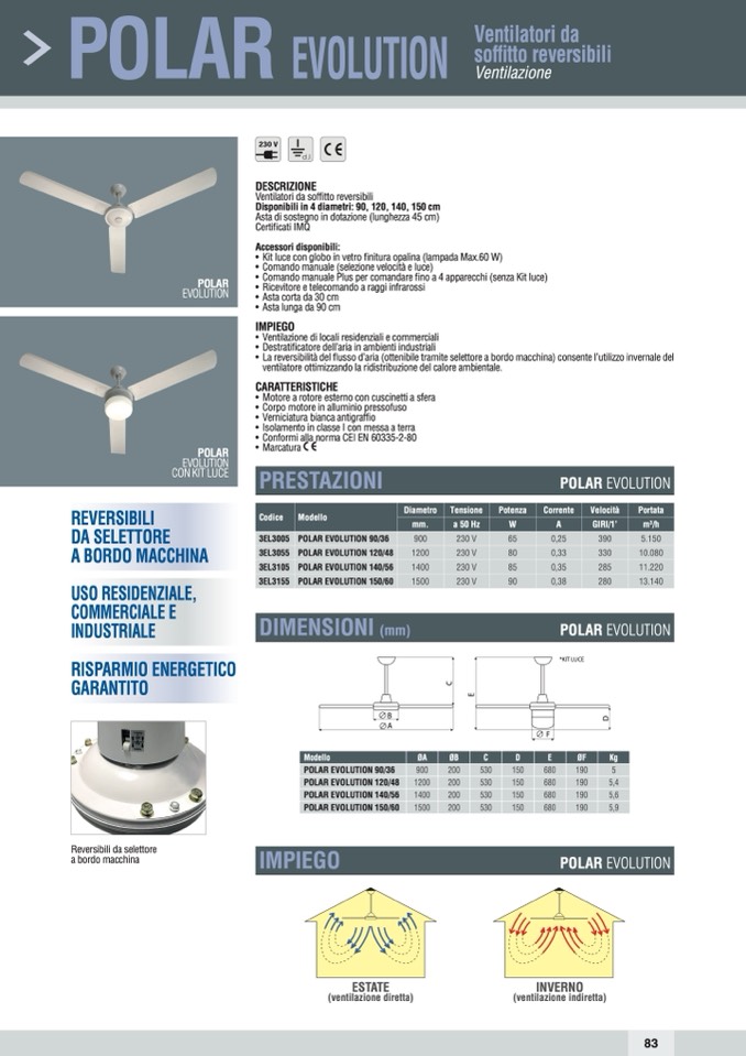 • La reversibilità del flusso d’aria (ottenibile tramite selettore a bordo macchina) consente l’utilizzo invernale del