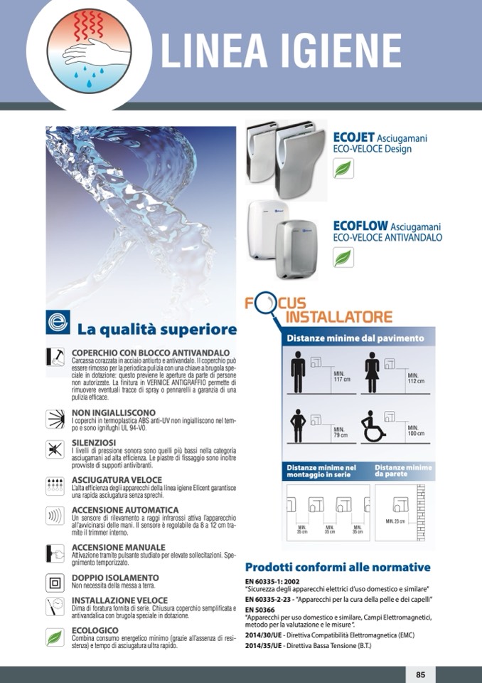 L’alta efficienza degli apparecchi della linea igiene Elicent garantisce