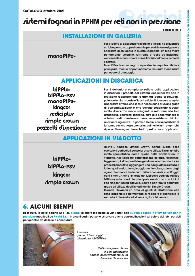 Di seguito, (e nelle pagine 12 e 13), esempi di opere realizzate in vari settori con i Sistemi Fognari in PPHM per reti non in