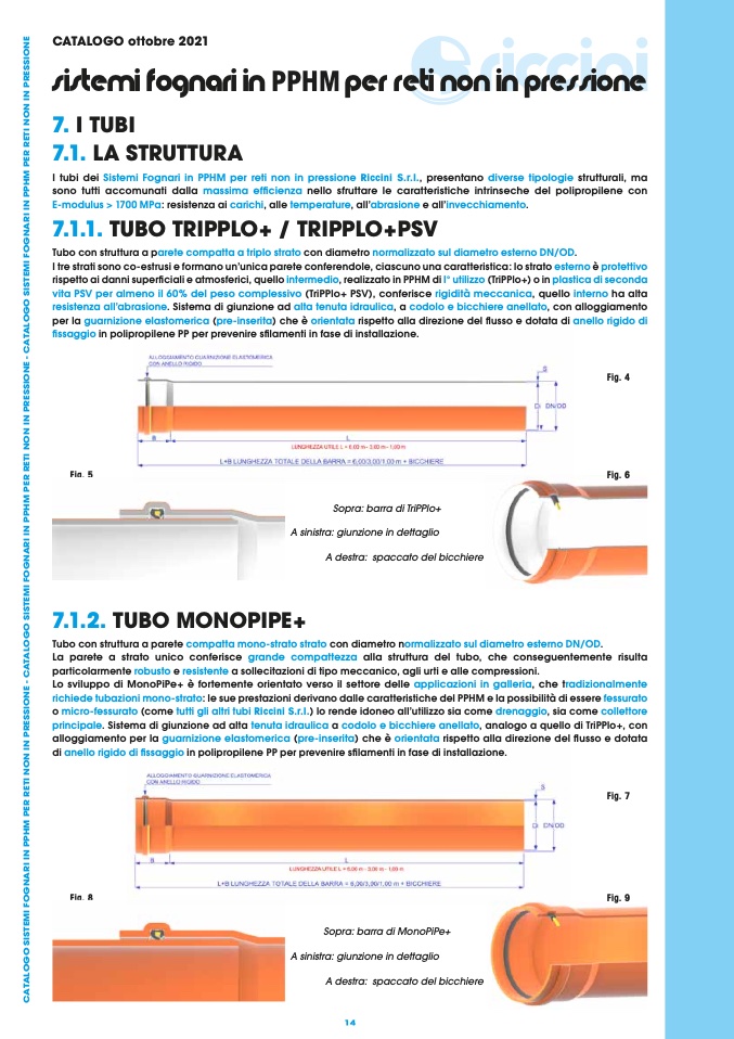 I tubi dei Sistemi Fognari in PPHM per reti non in pressione Riccini S.r.l., presentano diverse tipologie strutturali, ma