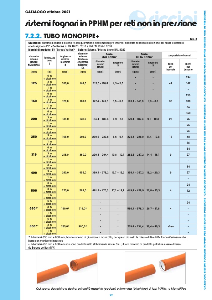 I diametri 630 mm e 800 mm non sono prodotti nello stabilimento Riccini S.r.l.; il loro marchio di prodotto potrebbe essere diverso