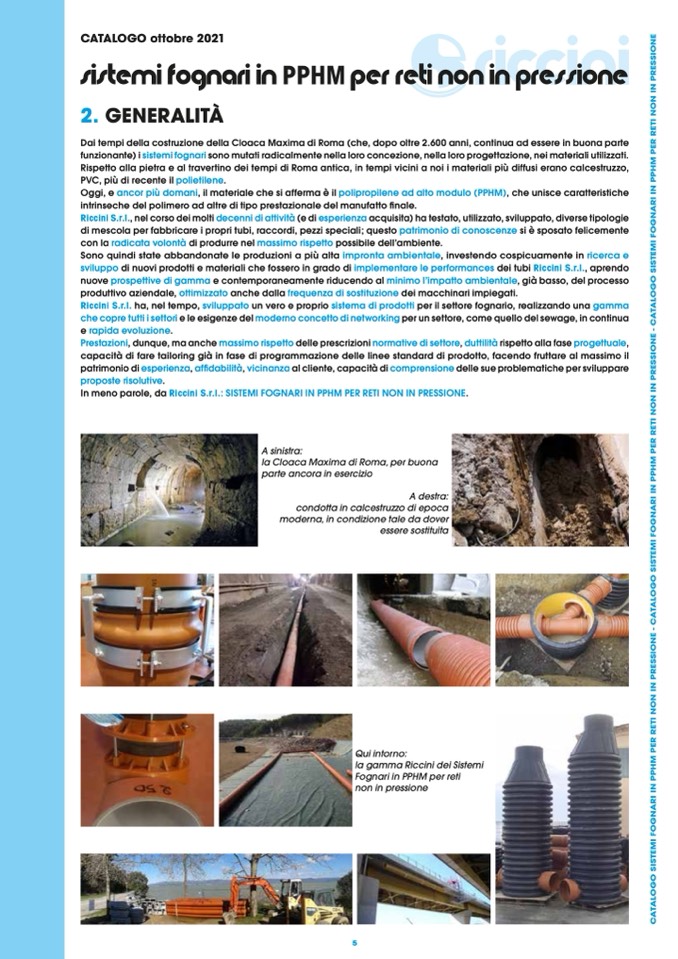 Riccini S.r.l. ha, nel tempo, sviluppato un vero e proprio sistema di prodotti per il settore fognario, realizzando una gamma