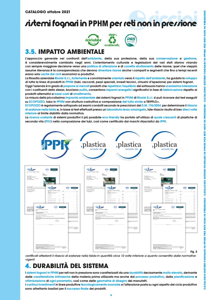 La misura della piccolissima impronta ambientale dei sistemi fognari in PPHM di Riccini S.r.l. si può ricavare dai test eseguiti