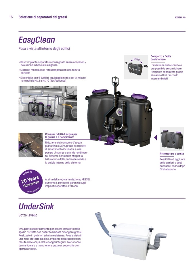 spazio ristretto con quantità limitate di fanghi e grassi.