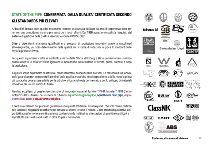 prodotti aquatherm viene continuamente confermato da moltissime attestazioni di qualità e certificati e