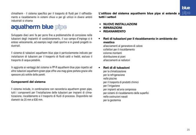 L'utilizzo del sistema aquatherm blue pipe si estende a