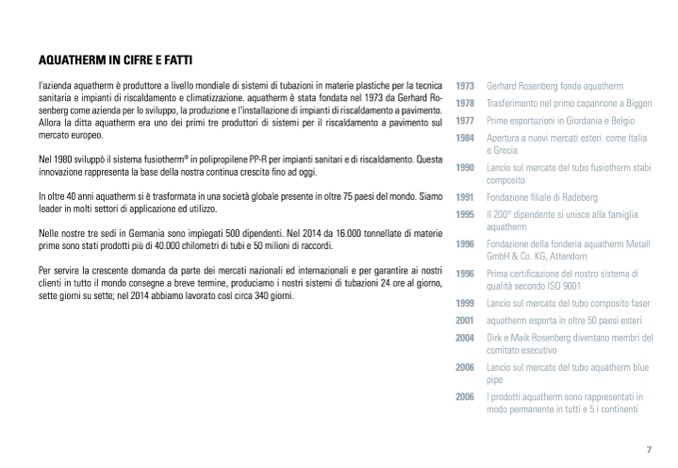 sanitaria e impianti di riscaldamento e climatizzazione. aquatherm è stata fondata nel 1973 da Gerhard Ro-