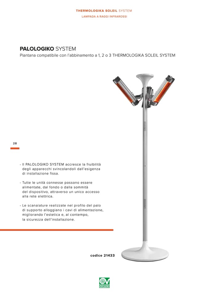 Piantana compatibile con l’abbinamento a 1, 2 o 3 THERMOLOGIKA SOLEIL SYSTEM