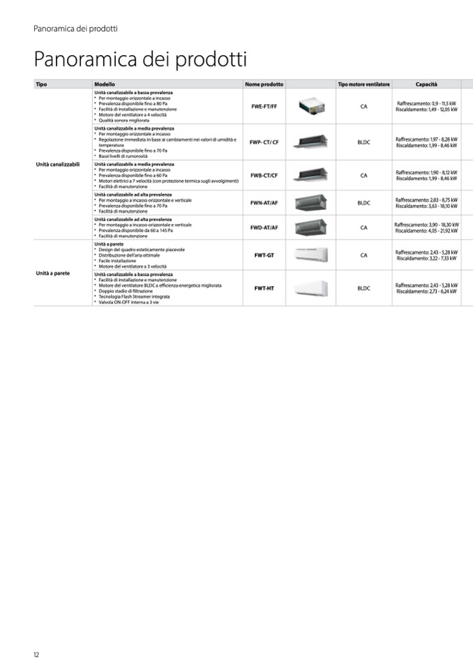 ffrescamento: 1,90 - 8,12 kW