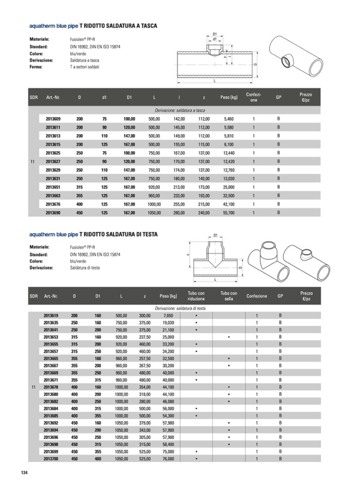 aquatherm blue pipe T RIDOTTO SALDATURA DI TESTA