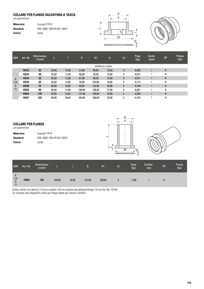 Collare ridotto con battuta 110 mm a saldare 125 mm maschio (da abbinare flange 110 mm Art.-Nr. 15724)