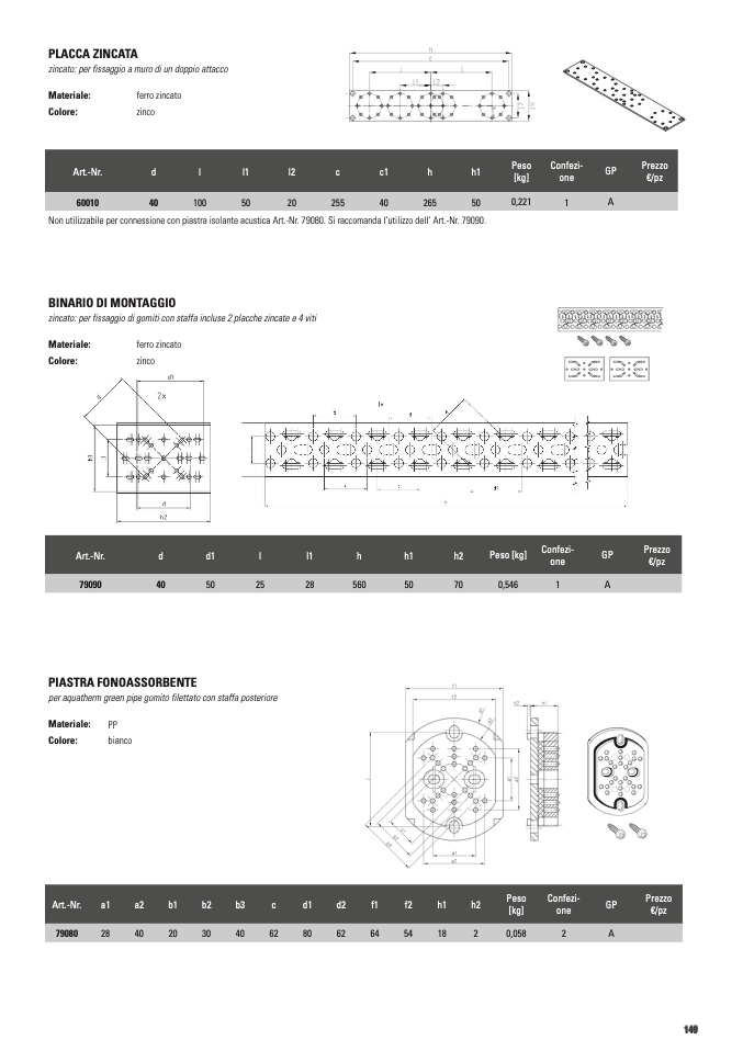 zincato: per fissaggio di gomiti con staffa incluse 2 placche zincate e 4 viti