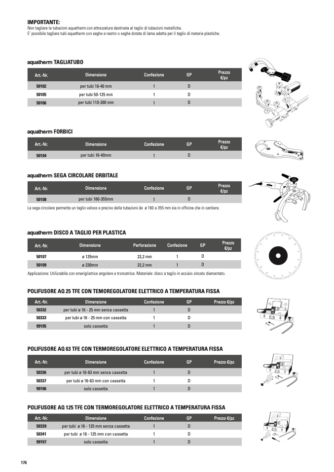 Non tagliare le tubazioni aquatherm con attrezzatura destinata al taglio di tubazioni metalliche.