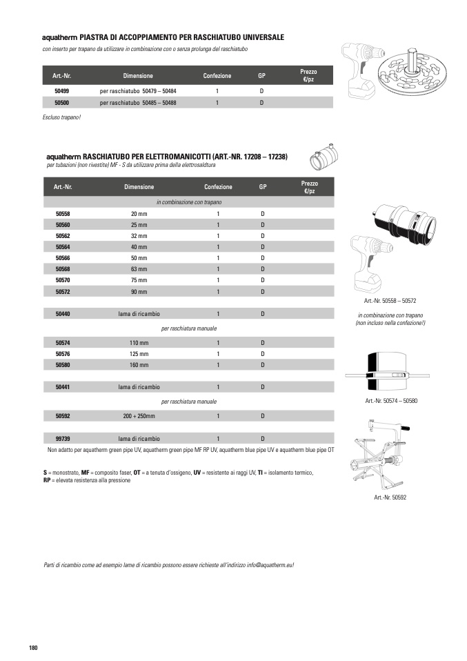 Non adatto per aquatherm green pipe UV, aquatherm green pipe MF RP UV, aquatherm blue pipe UV e aquatherm blue pipe OT