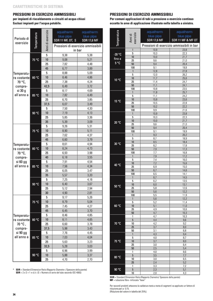* SDR = Standard Dimension Ratio (Rapporto Diametro- / Spessore della parete)