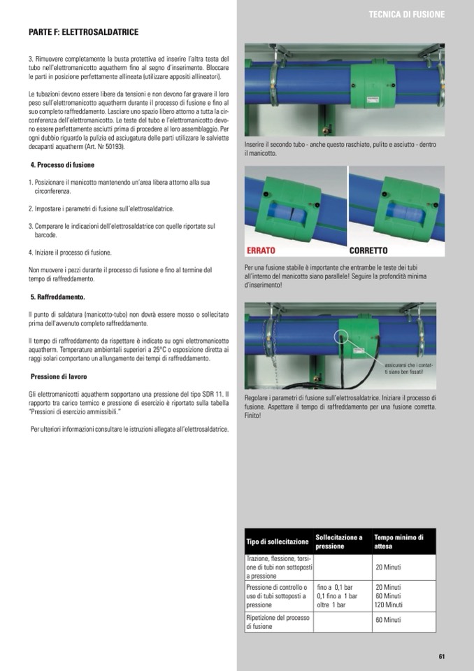 Il tempo di raffreddamento da rispettare è indicato su ogni elettromanicotto