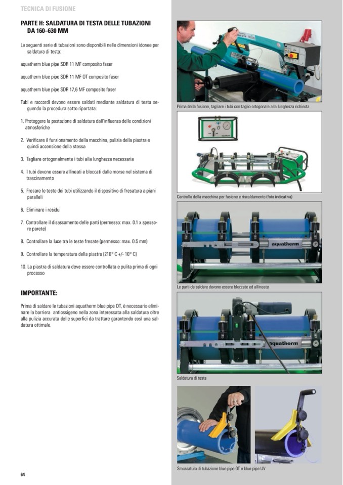 Tubi e raccordi devono essere saldati mediante saldatura di testa se-