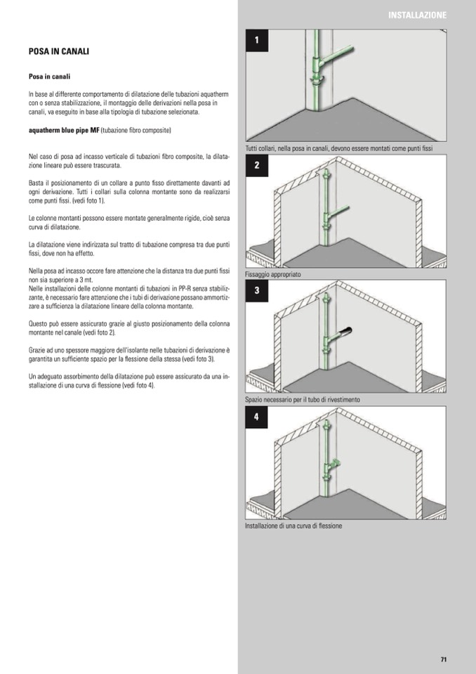 Tutti collari, nella posa in canali, devono essere montati come punti fissi