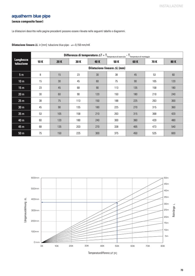 Dilatazione lineare ΔL in [mm]: tubazione blue pipe -