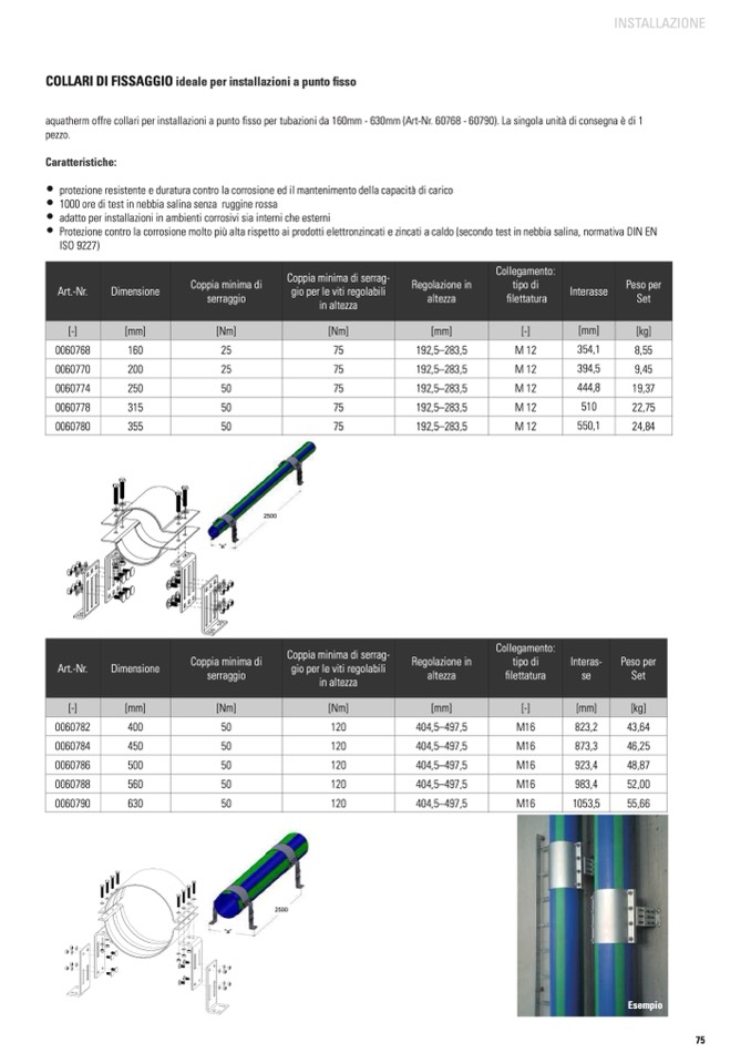 aquatherm offre collari per installazioni a punto fisso per tubazioni da 160mm - 630mm (Art-Nr. 60768 - 60790). La singola unità di consegna è di 1