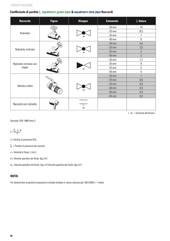 Coefficiente di perdita ζ aquatherm green pipe & aquatherm blue pipe Raccordi