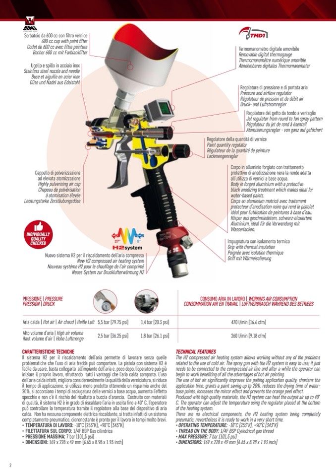 related to the use of cold air. The spray gun with the H2 system is easy to use; it just