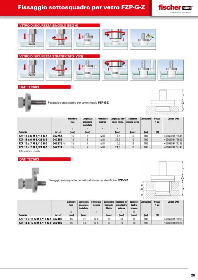 Fissaggio▪sottosquadro▪per▪vetro▪di▪sicurezza▪stratifificato▪FZP-G-Z