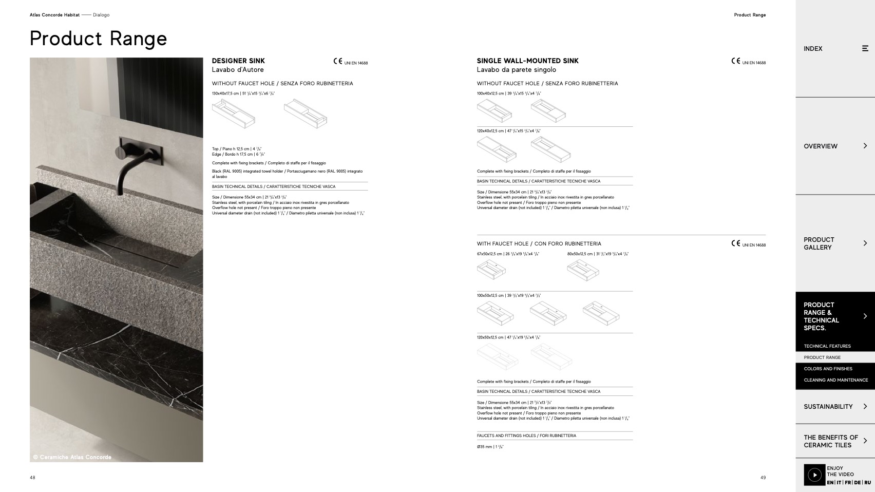 BASIN TECHNICAL DETAILS / CARATTERISTICHE TECNICHE VASCA