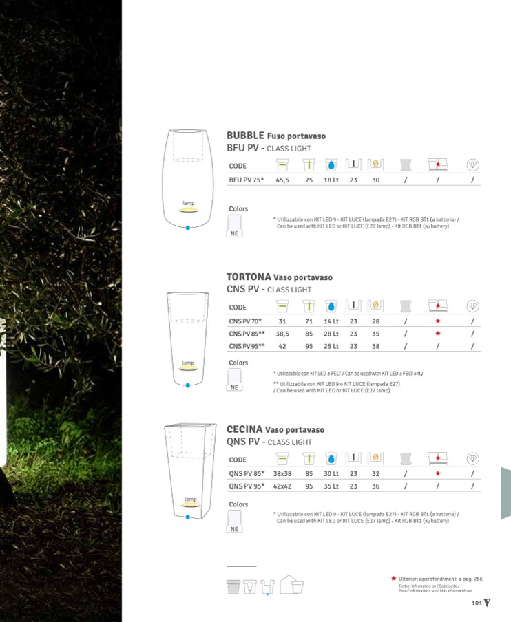 * Utilizzabile con KIT LED 9 - KIT LUCE (lampada E27) - KIT RGB BT1 (a batteria) /