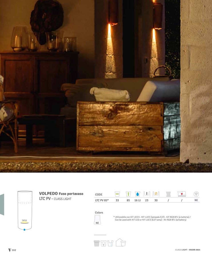 Can be used with KIT LED or KIT LUCE (E27 lamp) - Kit RGB BT1 (w/battery)