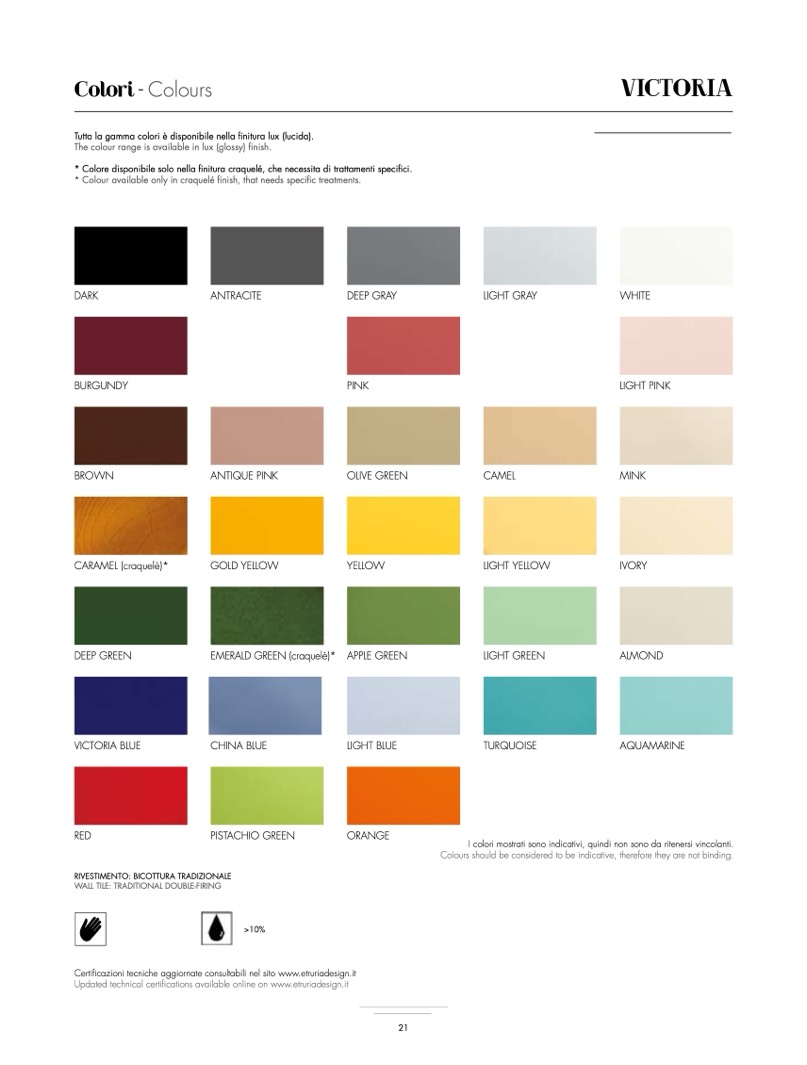 * Colore disponibile solo nella finitura craquelé, che necessita di trattamenti specifici.