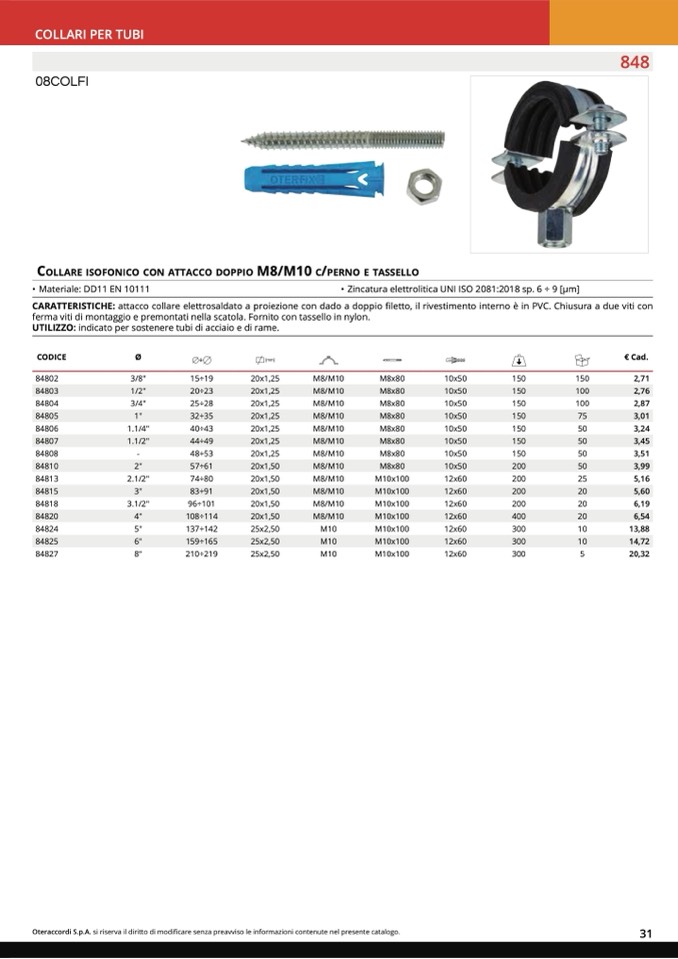 COLLARE ISOFONICO CON ATTACCO DOPPIO M8/M10 C/PERNO E TASSELLO